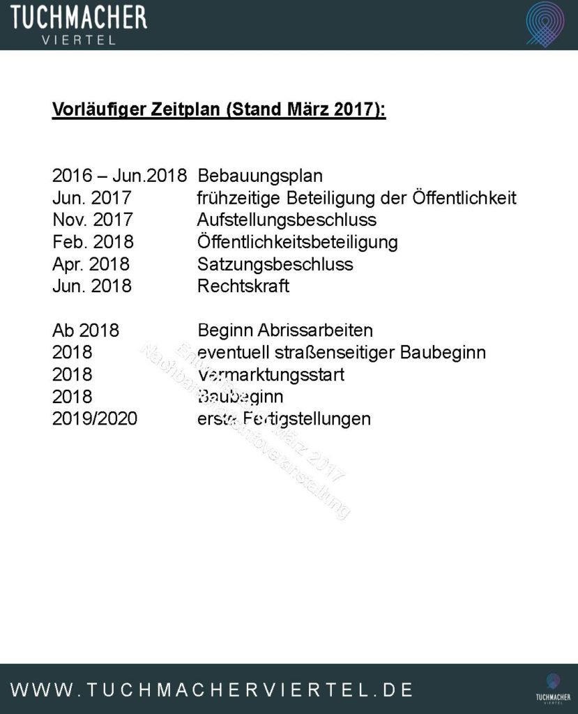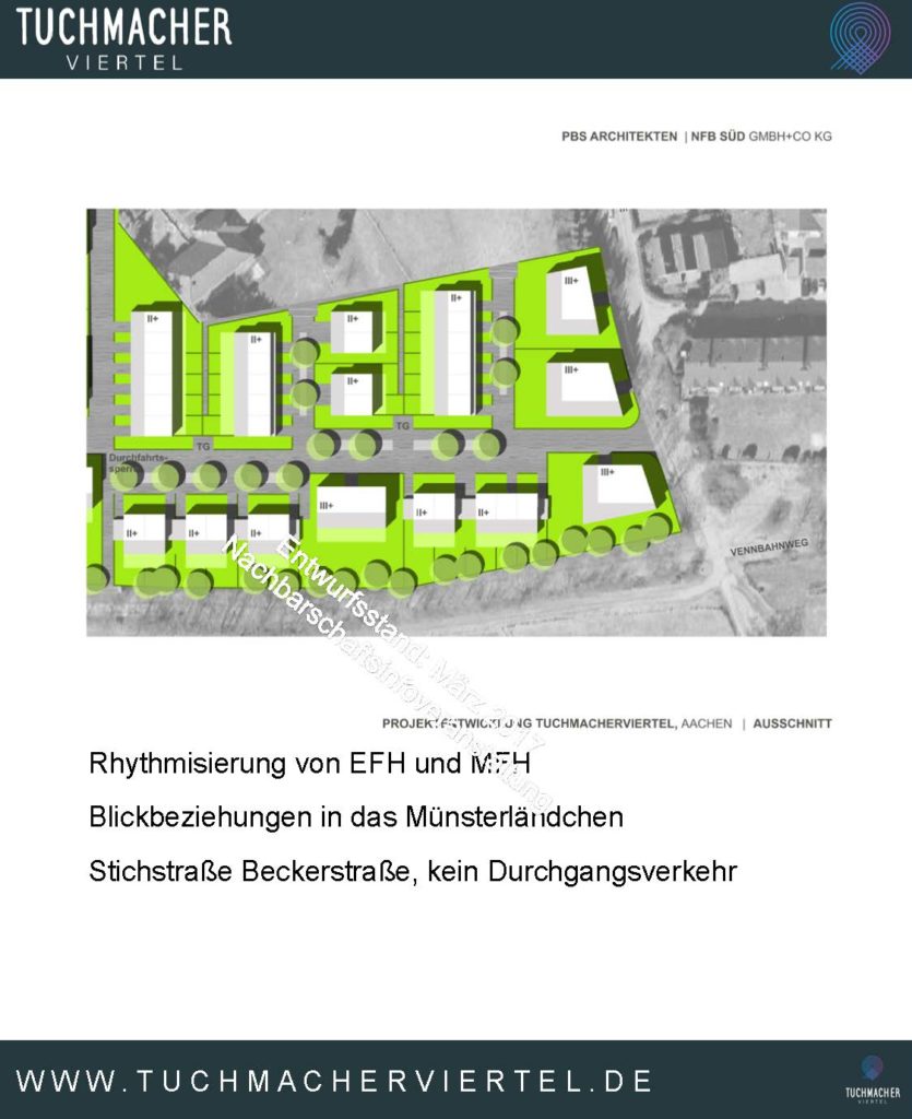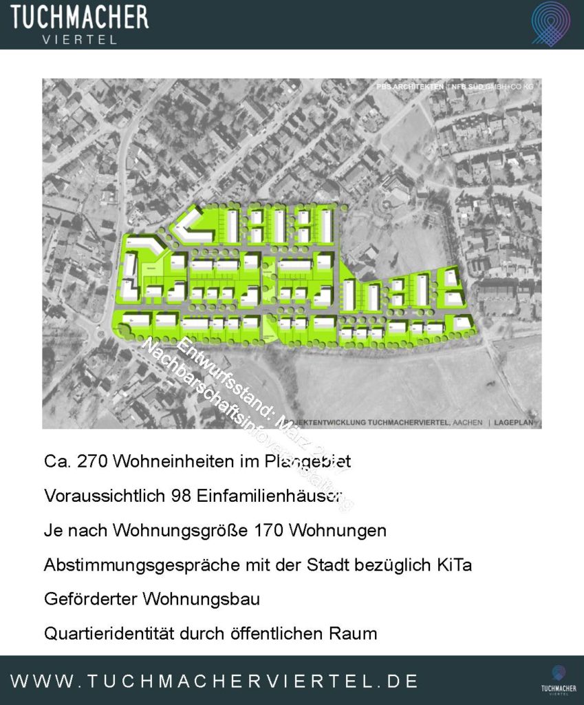 „Wir haben ein großes Interesse und Zustimmung zu den Plänen und Ideen für das Tuchmacherviertel erfahren.“ fasst Nisse Neßeler die Eindrücke der beiden ersten Informationsveranstaltungen am 31.03. und 01.04.2017 zusammen. Mehr als 200 Nachbarn stellten in den Räumen der Tuchfabrik Fragen, äußerten Wünsche und gaben Anregungen. Die Neugierde für die Grundstücksentwicklung war spürbar, eine Bäckerei und eine KiTa im Quartier anzusiedeln wurde positiv aufgenommen. Erste Interessenten baten bereits um Vormerkung für den Verkaufsstart der Wohnungen und Häuser.