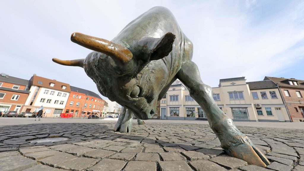 Der Brander Stier - eine lebensgroße Bronzestatue auf dem Brander Marktplatz